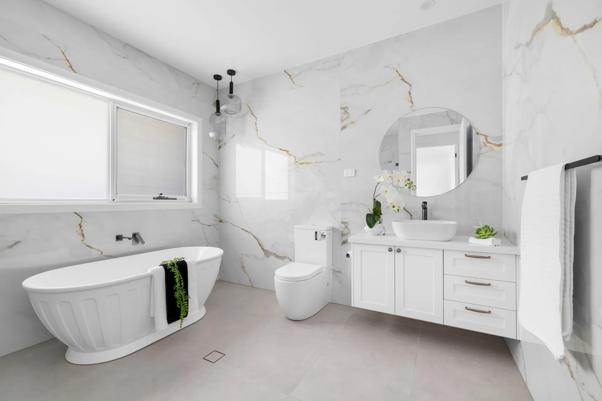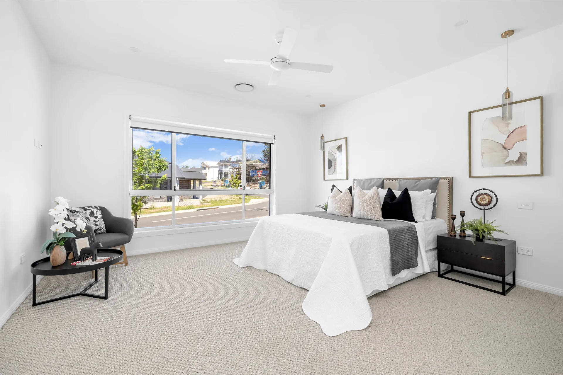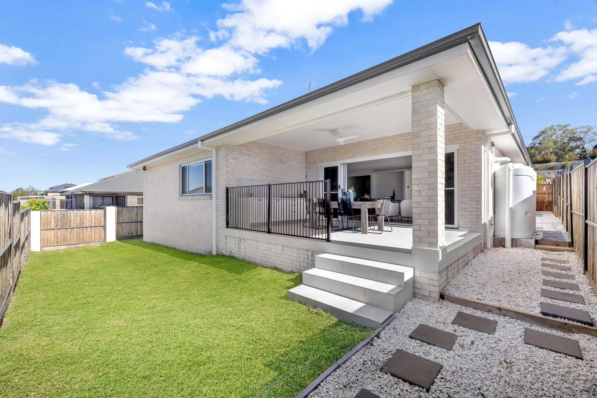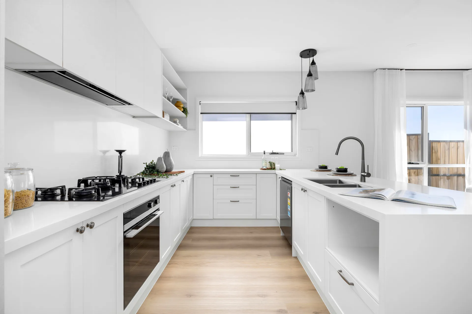At the heart of the home, the gourmet kitchen with butler’s pantry flows into an expansive open-plan living and dining area, extending to a covered alfresco with outdoor kitchen — ideal for year-round entertaining.